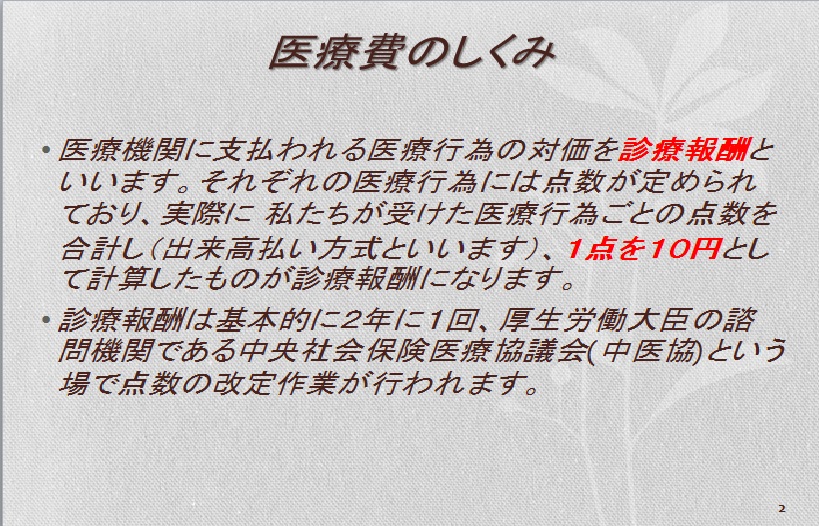 H26年11月18日に第3回目となる部署代表勉強会を行いました。今回は当院の医事課主任に、診療報酬についてお話いただきました。とても広範囲な内容でしたが、初歩的なことから各部署が関わる細かい部分までわかりやすくお話いただき、とても有意義な勉強会となりました。
